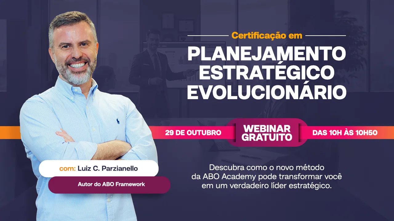 O webinar será conduzido por Luiz C. Parzianello, autor do método ABO Evolutionary Strategic Planning, criador do Framework for Agile Business Ownership e reconhecido como agente de transformação do pensamento estratégico em organizações brasileiras e internacionais por meio da Agilidade de Negócios (Business Agility).